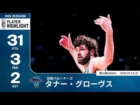 【プレーまとめ】佐賀#22 タナー・グローヴス|第31節GAME1|04.11.2026 プロバスケ (Bリーグ)