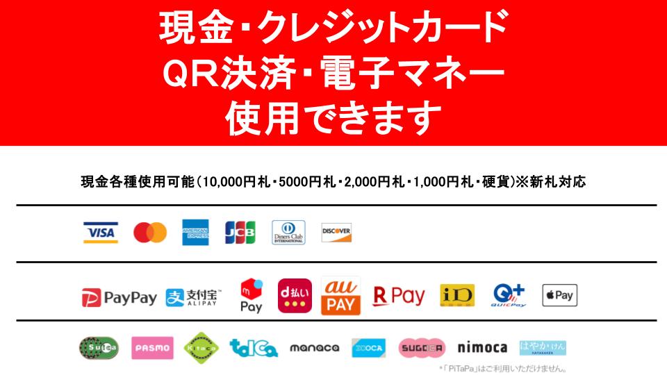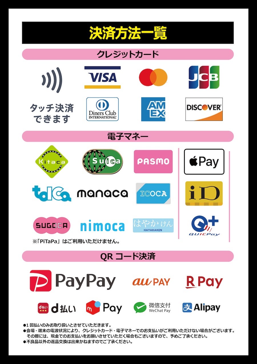 ▼C・Fエリアにて利用可能なキャッシュレス決済は以下の通りです▼