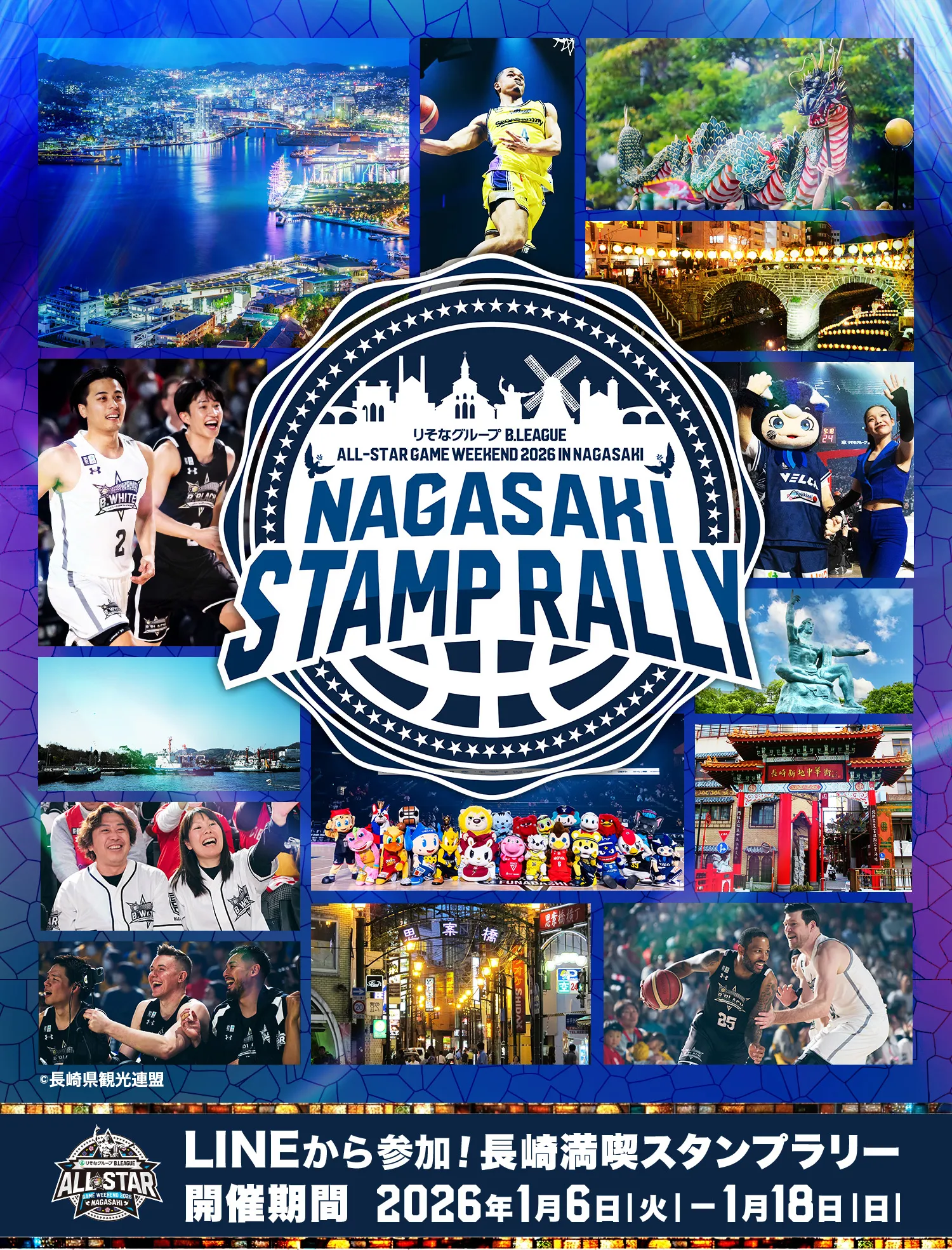 - 「LINEから参加!長崎満喫スタンプラリー」(以下「本イベント」といいます)へのご参加にあ たっては、事前に本参加規約および「りそなグループ B.LEAGUE ALL-STAR GAME WEEKEND 2026 IN NAGASAKI」の 本イベント特設サイトの記載事項を必ずお読みください。
