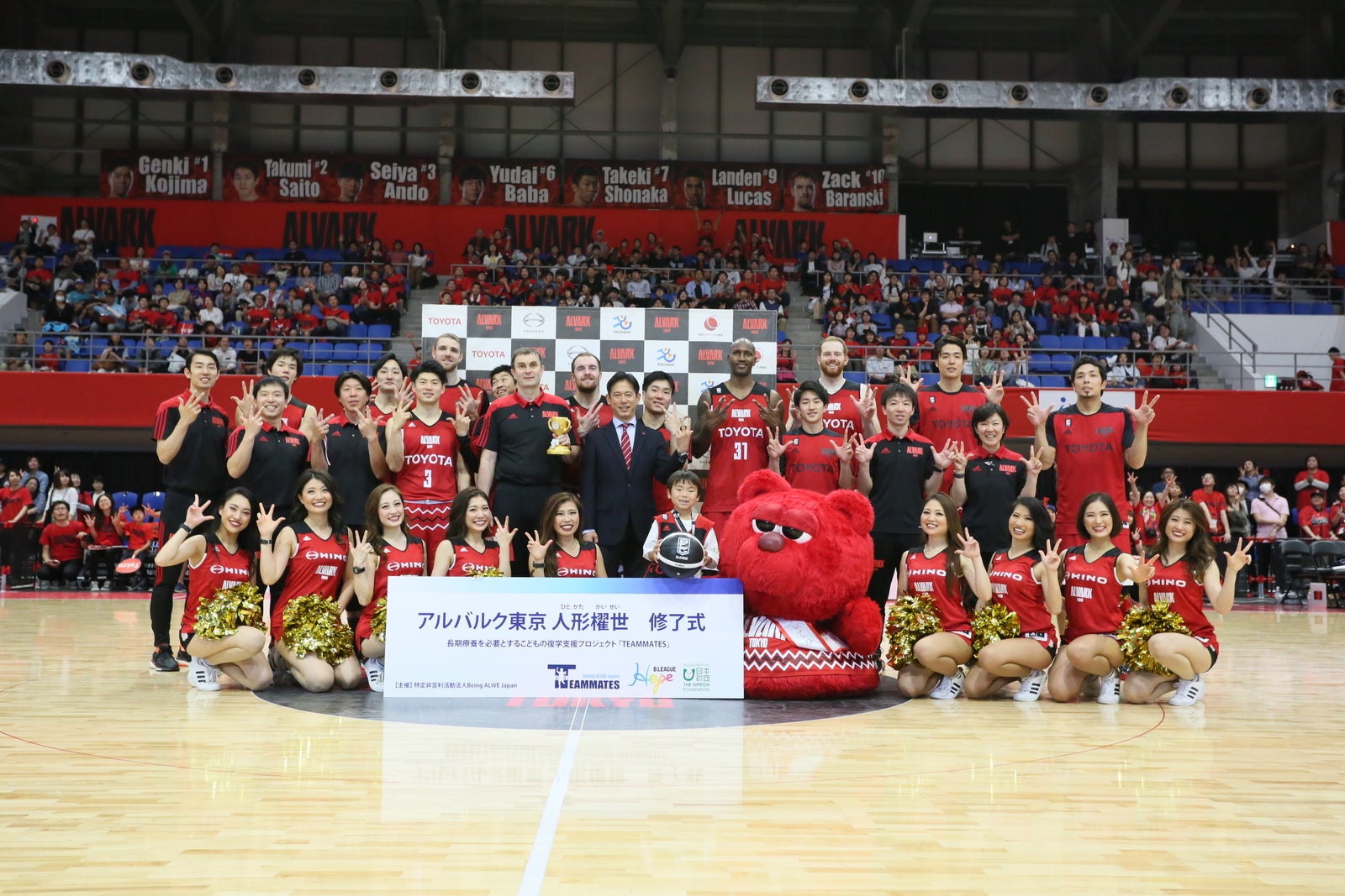 2017年11月15日から約半年間に渡り、長期療養を必要とする子どもの復学支援プログラムである「TEAM MATES」事業に参加していた人形櫂世くんの修了式が2018年5月5日アルバルク東京のホーム最終節にて執り行われました。