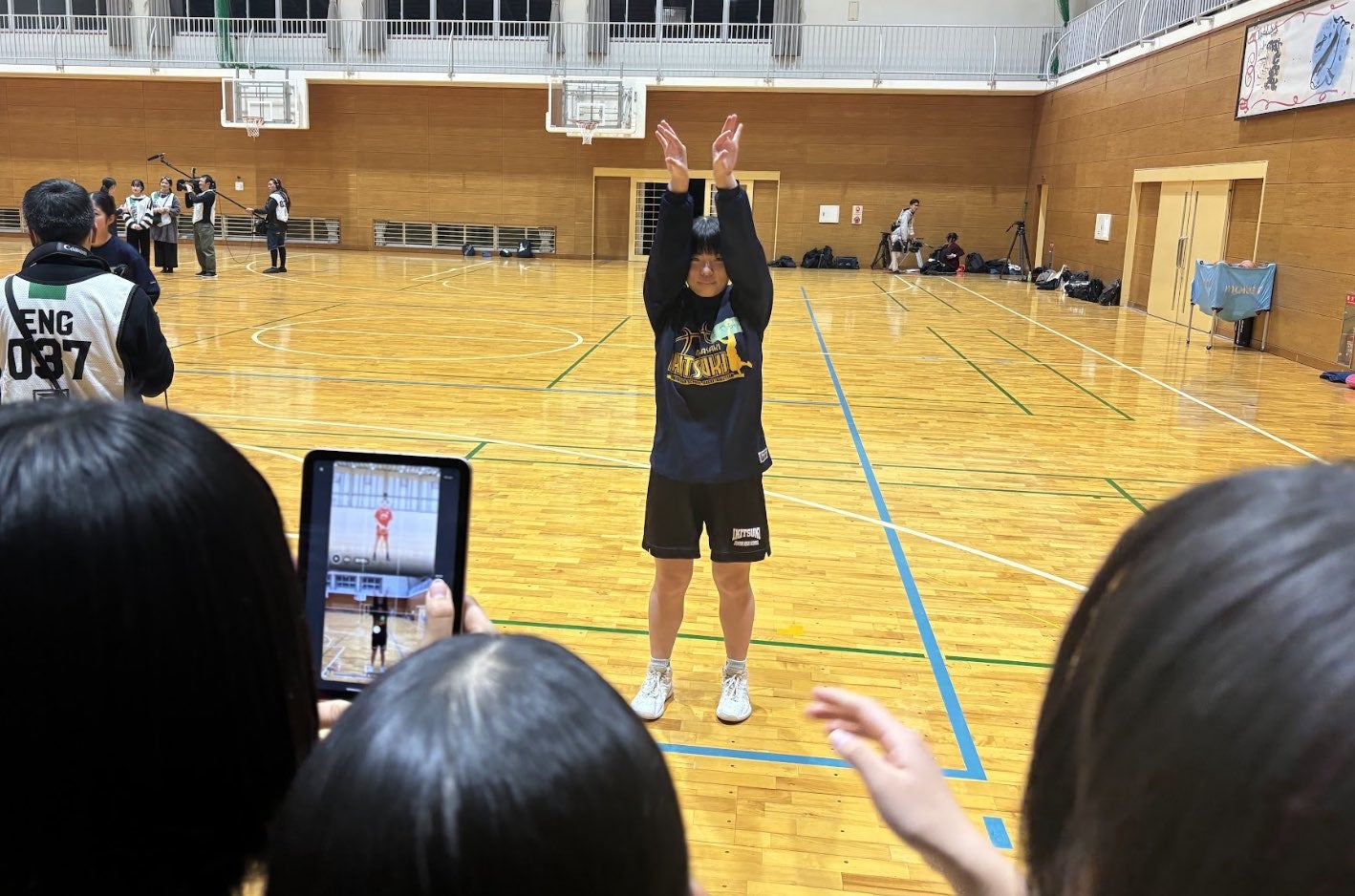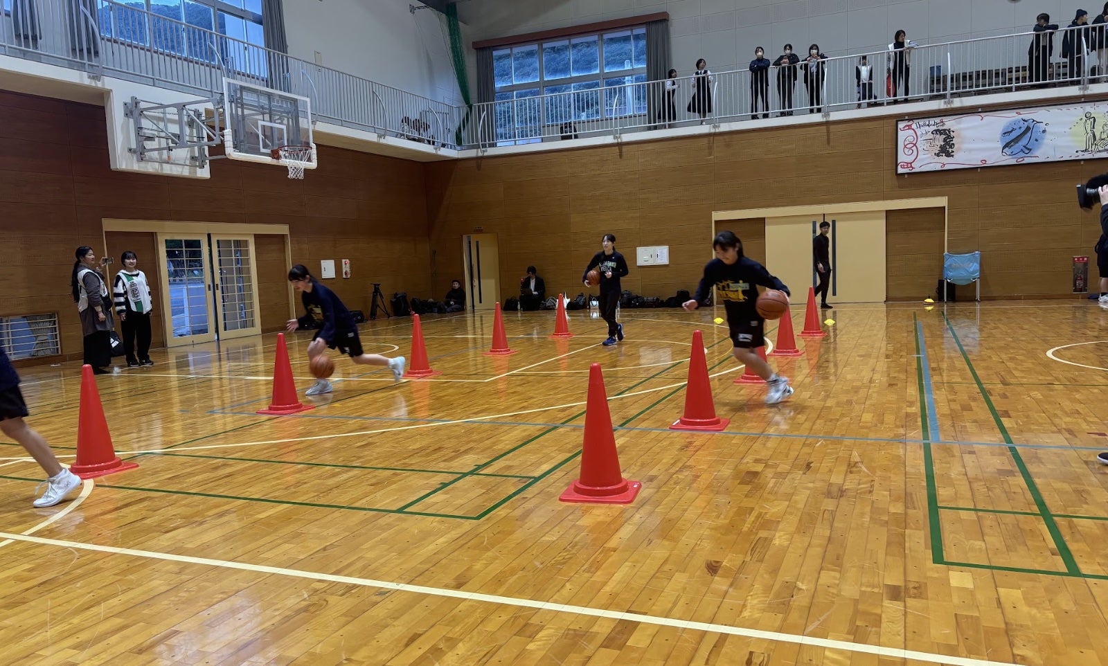 生月中学校女子バスケットボール部の山浦顧問はインタビューで 「離島はどうしても距離的なハンデがあります。普段から子どもたちは色々な経験が少ないので、試合でも上手くいかないことがたくさんありますが、それでも子どもたちは一生懸命バスケを続けていました。このお話をいただいた時、”神様は見てくれてたね”と話して、子どもたちは二つ返事でやりたいですと答えていました」 と想いを語ってくださったように、生徒たちは真剣に、時には笑顔を見せながら楽しんでクリニックに参加していました。