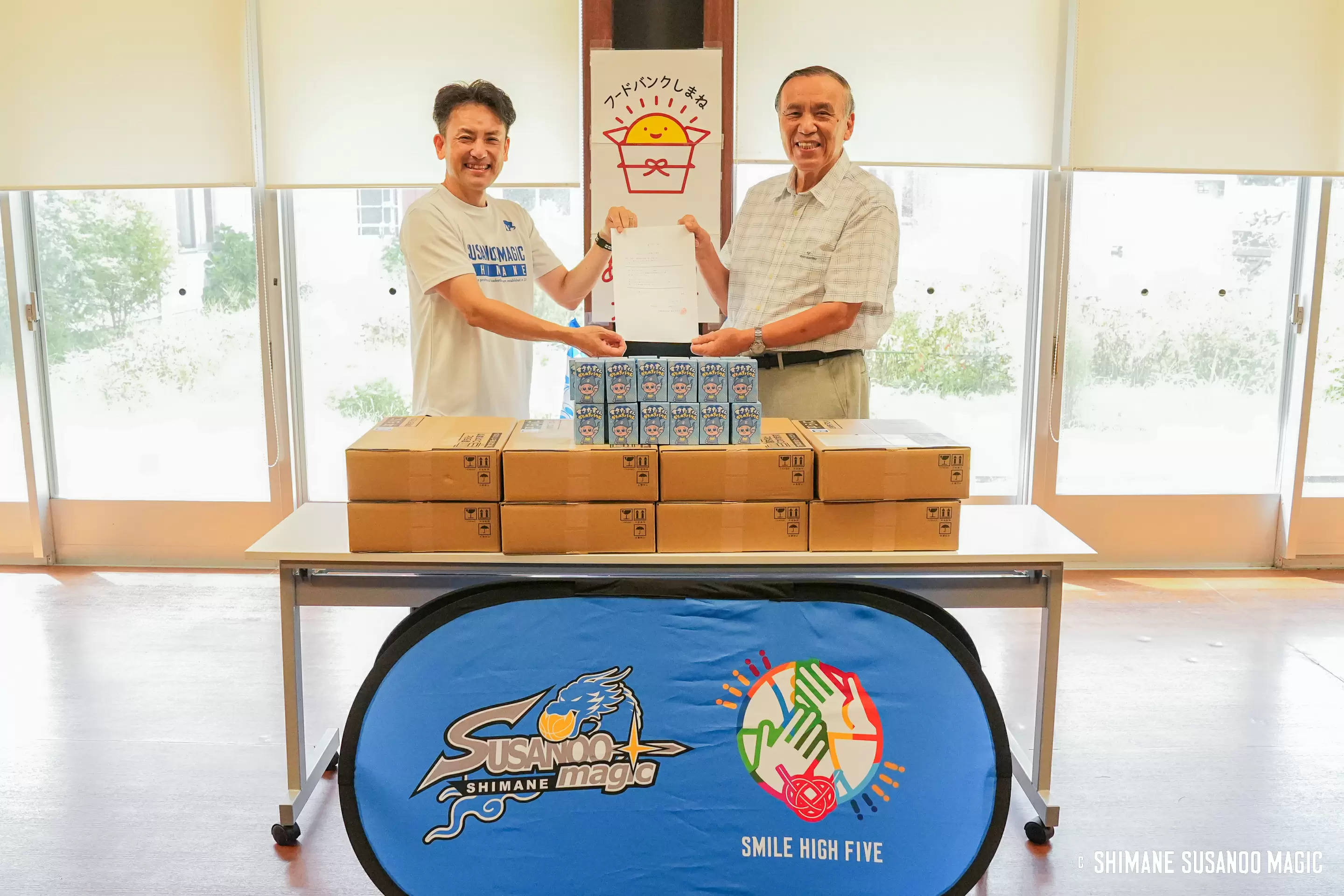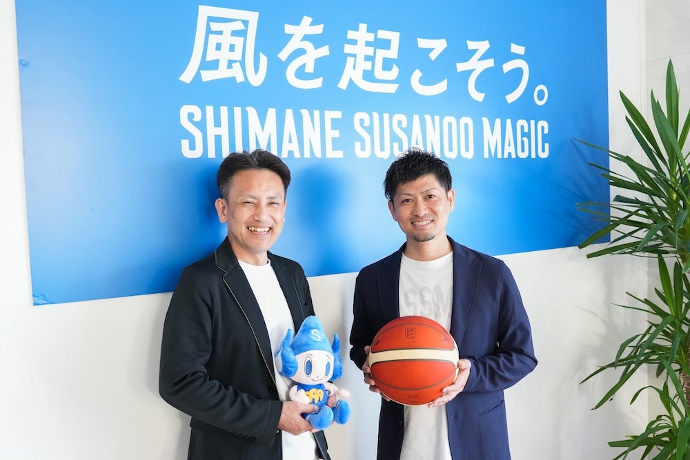 島根スサノオマジックは昨年8月にサステナブル活動「SMILE HIGH FIVE」を始動。営業部GMの沓名克敏さんとコーポレート部リーダーの久城秀太さんが中心に、子どもたちへの働きかけと地域の社会課題に向き合う取り組みを進めています。 “島根県、山陰地域を魅力的な都市にし、その中心にクラブがある”——その理想の実現に向けて歩むお二人に話を伺いました。