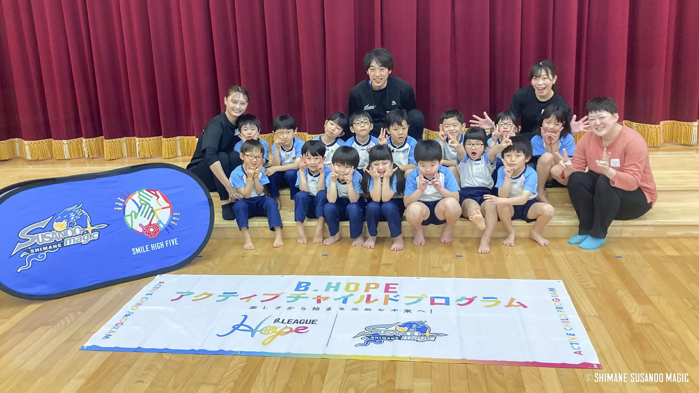 久城)「SMILE HIGH FIVE」を立ち上げた当時の中村律COOが「将来の担い手は子どもたちです」と話していましたが、今も強い思いを感じていて子どもたちに焦点を当てた取り組みを積極的に行っています。活動を通じて、子どもたちに島根スサノオマジックをより身近に感じてもらい、夢や希望を持ってもらいたいという考えです。