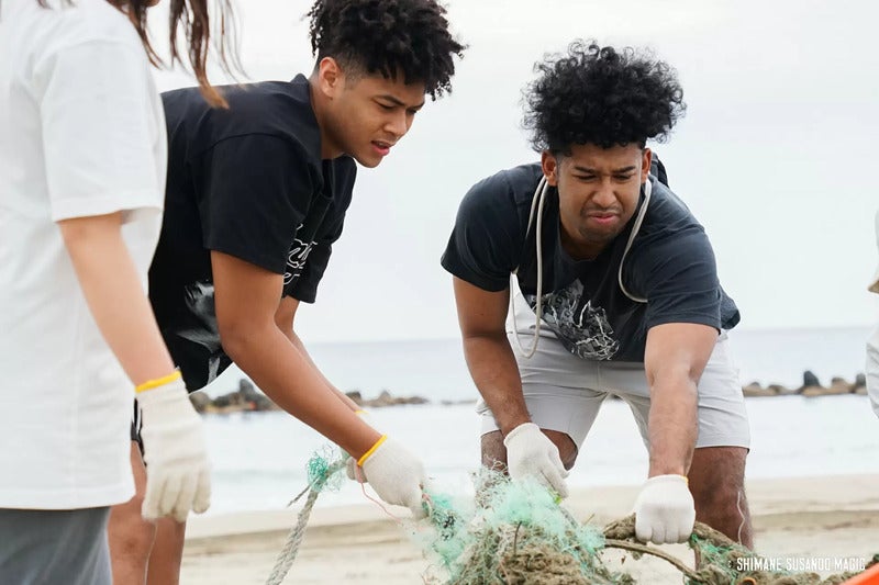 ——5月に、島根・古浦海水浴場にてビーチクリーン活動をされました。これはマカドゥ選手とご家族の「大好きな松江の海をきれいにしたい」という想いから実現したそうですね。
