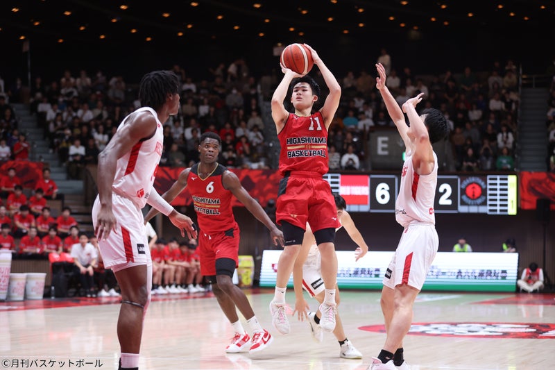 まず紹介したいのが、インターハイで創部初の日本一となった東山高(京都府)だ。エース#5瀬川琉久(U18男子日本代表)、キャプテンの#4松島慎弥という頼れる3年生がいて、横浜BC U15出身のスコアラー#11佐藤凪や中学時代に何度となく全国大会優勝を経験してきたスーパールーキー、#14中村颯斗と屈指のオフェンス力こそが武器のチームである。