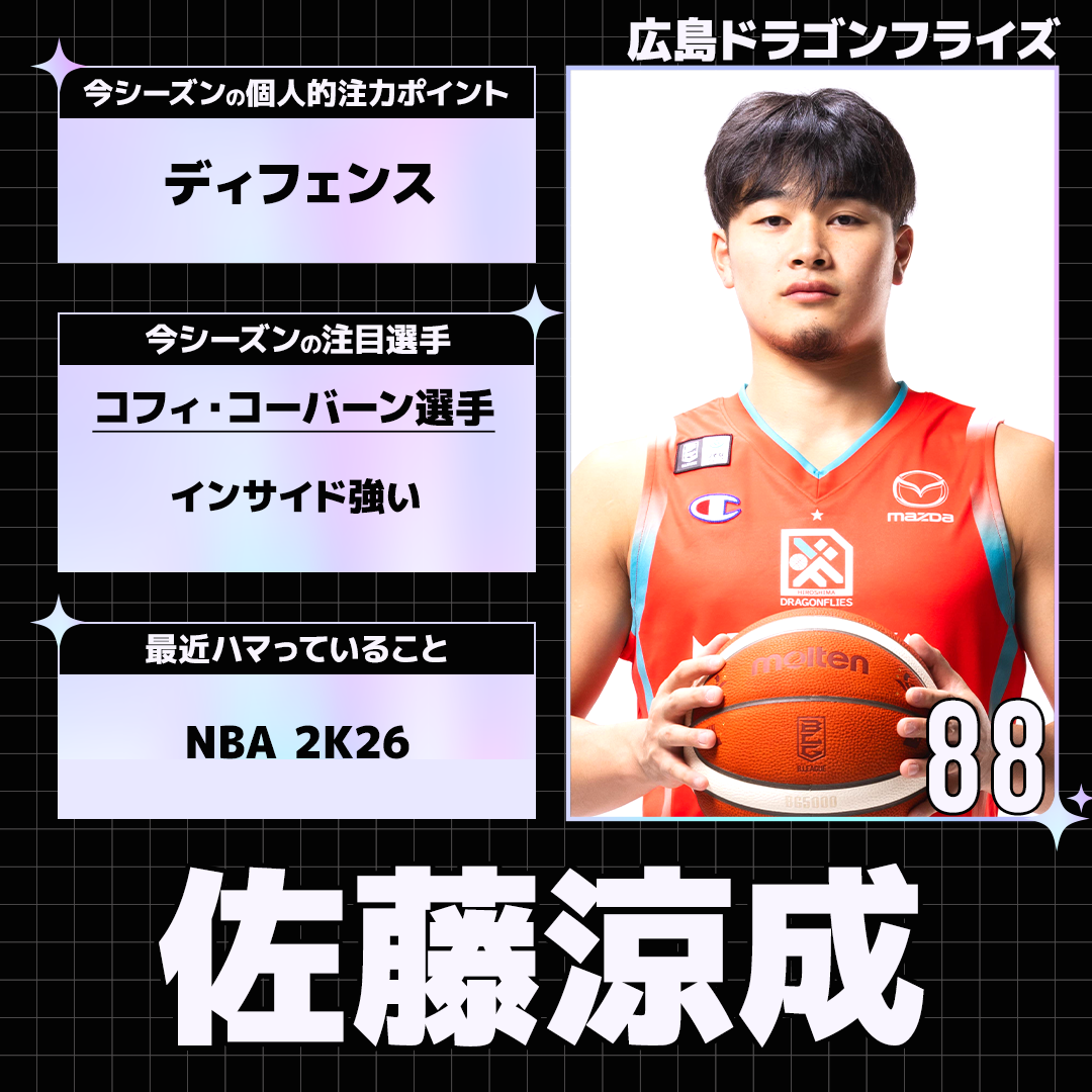 りそなグループ B.LEAGUE 2025-26 SEASONの開幕を目前に控えた選手たちにアンケートを実施。各選手から個性あふれる回答が届きました。今回は広島ドラゴンフライズの選手たちの回答を紹介します。