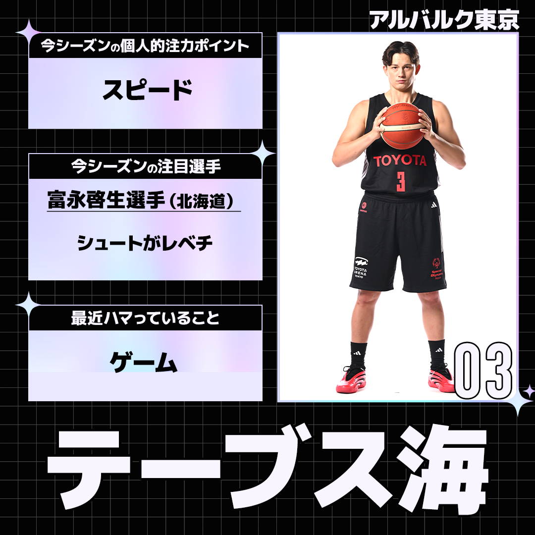 りそなグループ B.LEAGUE 2025-26 SEASONの開幕を目前に控えた選手たちにアンケートを実施。各選手から個性あふれる回答が届きました。今回はアルバルク東京の選手たちの回答を紹介します。
