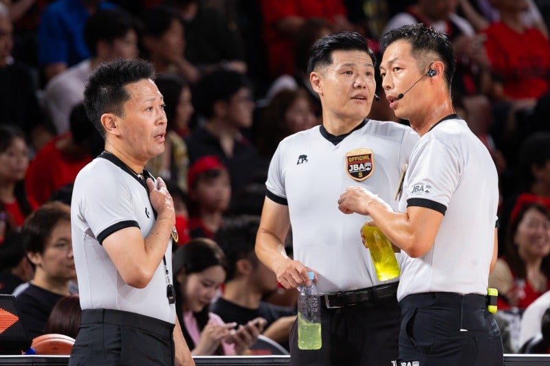 A東京は試合開始前にブランドン・デイヴィス選手、セバスチャン・サイズ選手、ライアン・ロシター選手の欠場を発表。3名のビッグマンを欠く戦いになりましたが、阿部レフェリーは「通常のリーグ戦でもスカウティングの内容とは違うことがよくありますので、(試合当日の発表でも)驚きはありませんでした」と動揺しなかったようで、秋山レフェリーは「その状況でA東京がどのようなバスケットボールをするのか。これまでの経験から『こういうことをしてくるのでは』と予想できたので、瞬時に切り替えられました」と続けました。