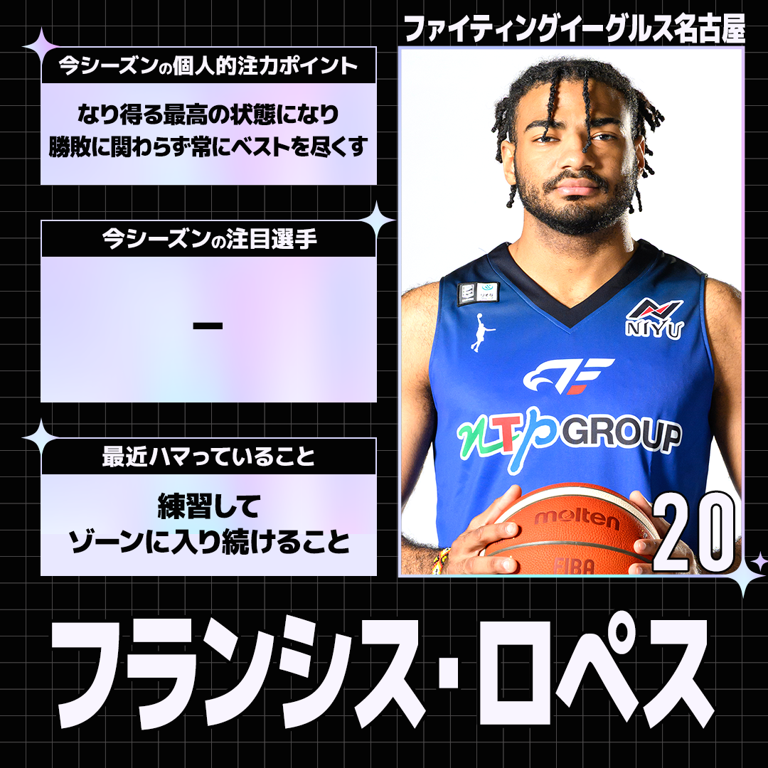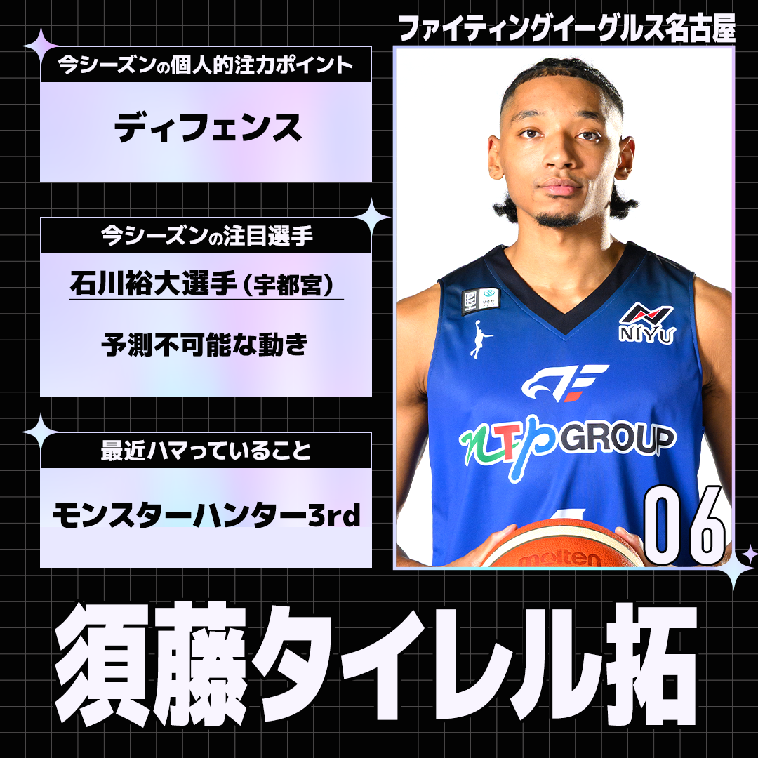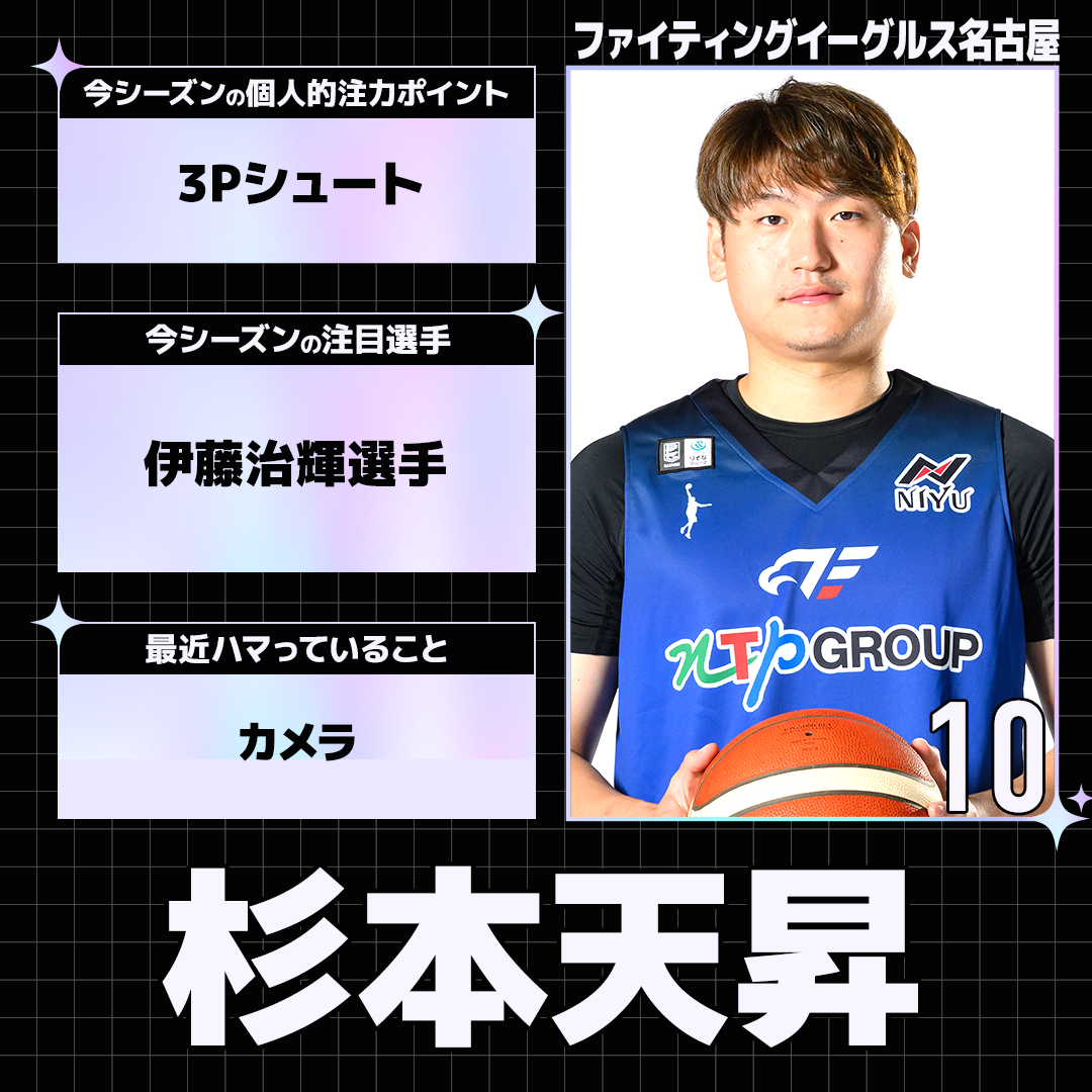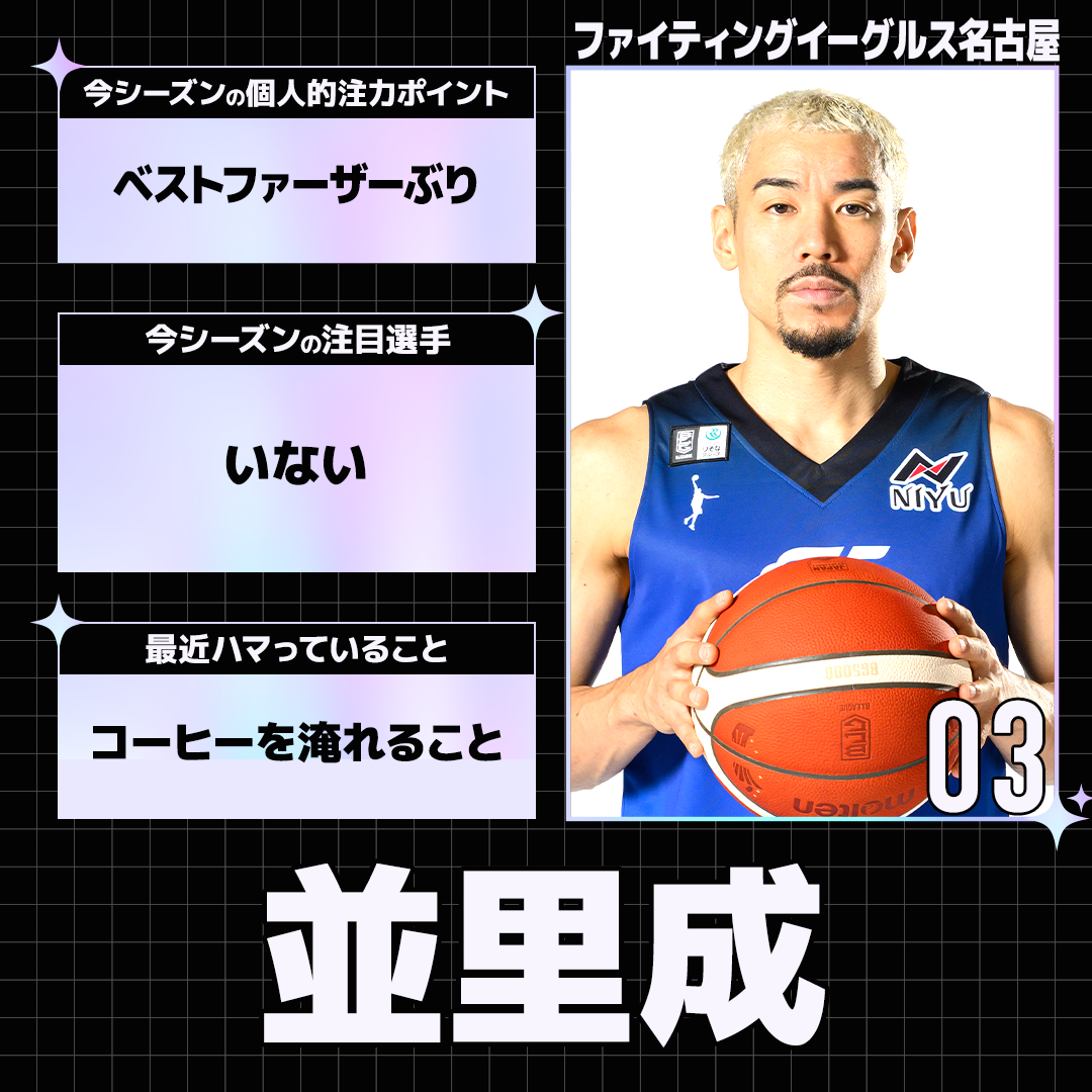 りそなグループ B.LEAGUE 2025-26 SEASONの開幕を目前に控えた選手たちにアンケートを実施。各選手から個性あふれる回答が届きました。今回はファイティングイーグルス名古屋の選手たちの回答を紹介します。