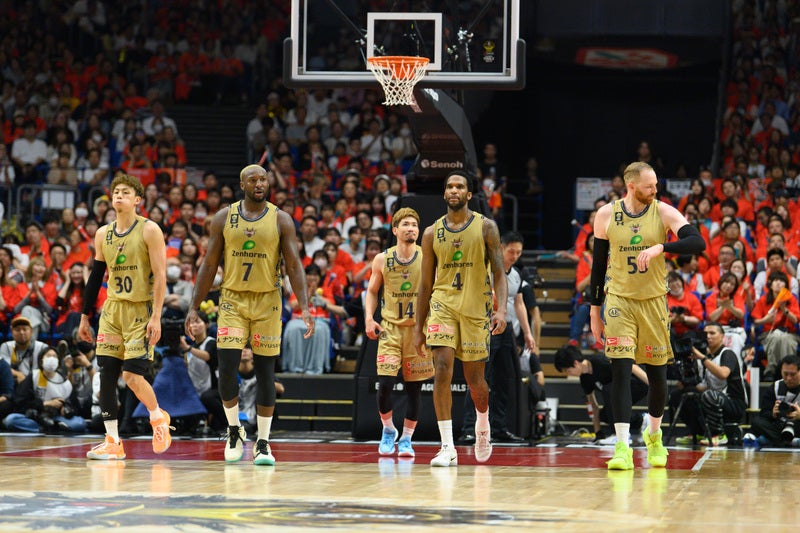広島の戦いぶりを振り返ると、クォーターファイナルで中地区王者の三遠と激突。爆発的なオフェンス力を誇る相手に対し、GAME1を70得点、GAME2を66得点に抑え、連勝を飾った。同じ西地区を制した名古屋Dとのセミファイナルも敵地での戦い。GAME3にもつれ込んだ激闘を制し、初めてファイナルの舞台に進出した。