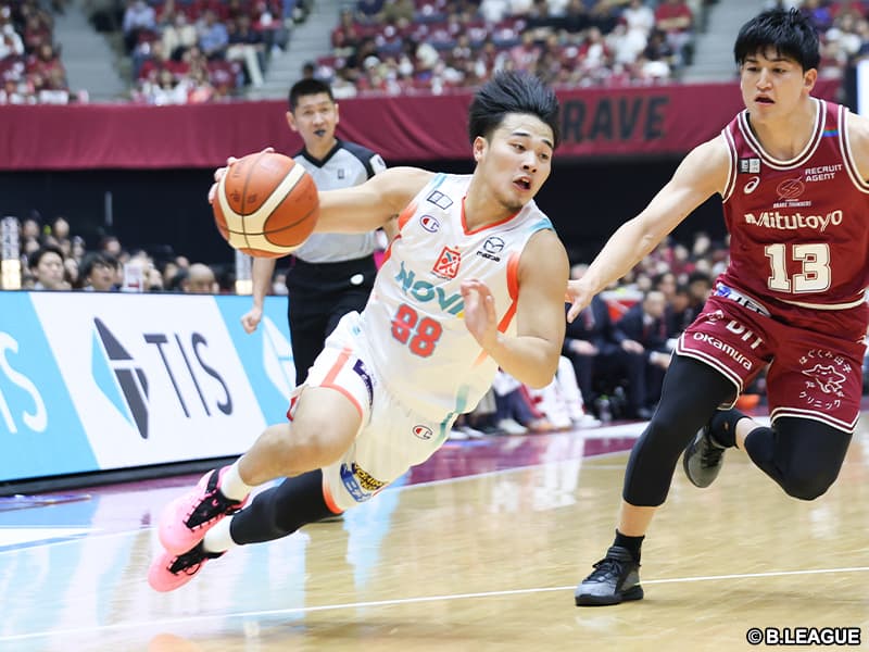 豊橋市総合体育館では、5勝4敗の三遠ネオフェニックスと4勝5敗の佐賀バルーナーズが激突する。三遠は佐々木隆成、佐賀はレイナルド・ガルシアというチームを象徴するガードがケガで離脱中。今節の対戦では、両選手に代わって攻撃をコントロールする大浦颯太、角田太輝によるマッチアップに注目だ。平均10.2得点5.9アシストをマークする大浦に対し、ディフェンス力のある角田も平均8.0得点6.1アシストでチームをけん引。どちらが自らのプレーで勝利を手繰り寄せるか。