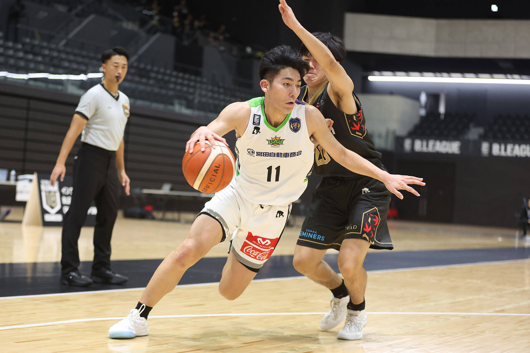 強い気迫を見せた北海道 U18の#11安藤煌太朗【(C) B.LEAGUE】
