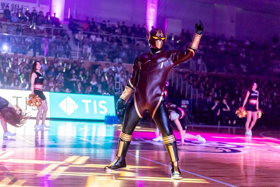 Bリーグマスコット…いや、マスコット界屈指のいい筋肉を持つ存在といえば、このお方。筋トレをこよなく愛するというアルファマンのインパクトあるボディは、すれ違えば、二度見、三度見必至であろう。