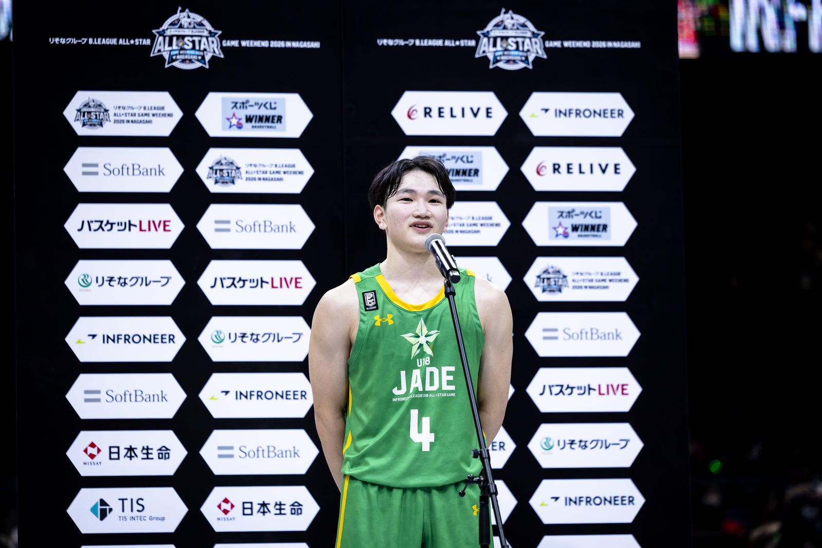 1月18日、りそなグループ B.LEAGUE ALL-STAR GAME WEEKEND 2026 IN NAGASAKI 最終日。B.LEAGUE U18の各チームからB.LEAGUE NEXT STAR PROJECTのプログラムの一環として選出された選手たちが「B.LEAGUE U18 JADE」と「B.LEAGUE U18 HELIOS」に分かれ、「インフロニア B.LEAGUE U18 ALL-STAR GAME 2026」で熱戦を繰り広げた。