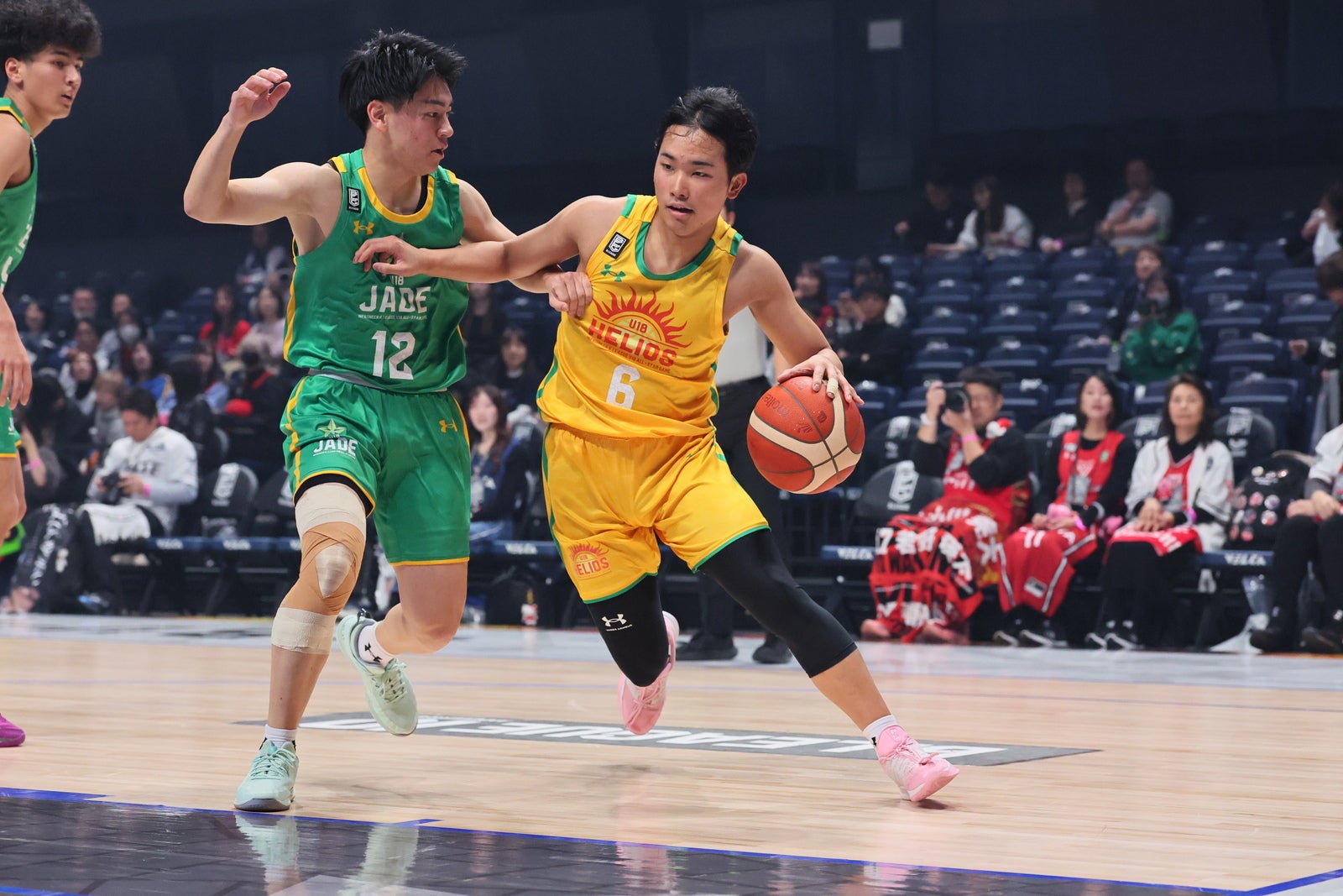 前日、コンテストに出場したB.LEAGUE U18 JADEの#5西村優真(北海道 U18)は「B.LEAGUE U18としては最後の舞台。絶対に勝ちたいし、バチバチやる試合を見せたいです」と語ると、B.LEAGUE U18 HELIOSの#5梶原悠真(滋賀 U18)も「絶対に負けたくない。みんなの武器を発揮し勝ちにいきます」と互いに真っ向勝負を誓っていた。