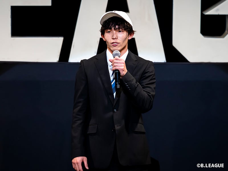 最後に島田チェアマンから名前を呼ばれたのは、佐賀バルーナーズから指名を受けた武富楓太(東海大学九州)。海外組の山﨑を除けば、関東大学リーグ以外から唯一の指名で、佐賀出身のポイントガードは「小さい頃から地元でプレーしたい思いがあったので、とてもうれしいです。いろいろな人に恩返しできるようなプレーをしていきたいと思っています」と決意を新たにした。