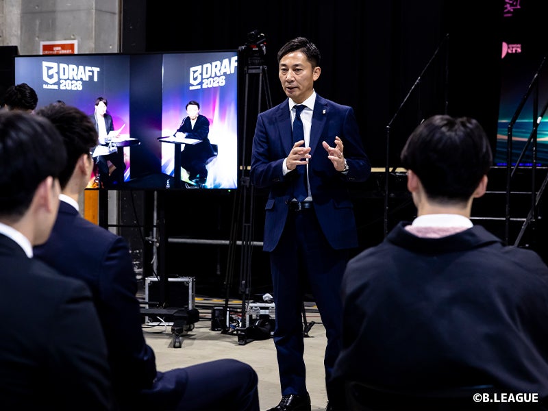 迎えた運命の日。Bリーグの島田慎二チェアマンが「ドラフトは私たちの『B.革新』における、大きな、重要な目玉施策の一つとなります。今日は1人でも多くの選手がプレミアの舞台でプレーすることを心から願って、Bリーグドラフト2026をスタートしたいと思います。最後までどうぞよろしくお願いします」と挨拶し、Bリーグにとって初のドラフトが幕を開けた。