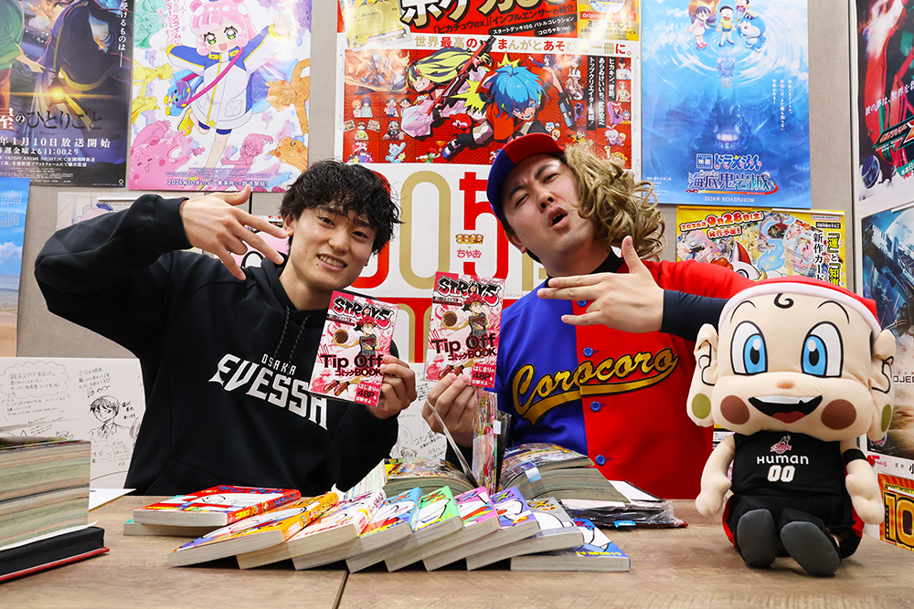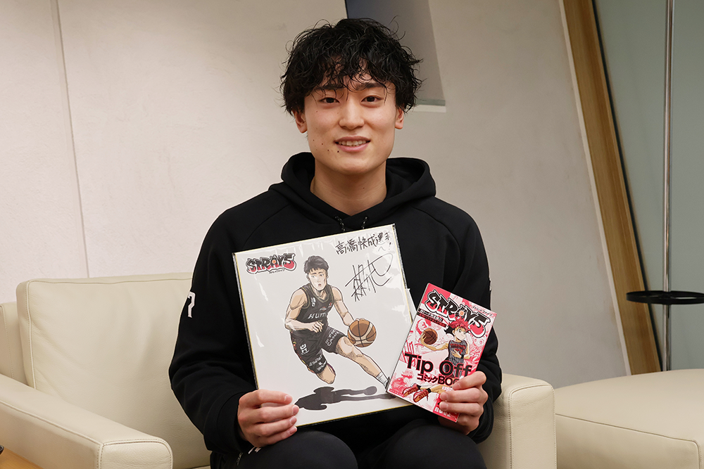 コーマさん:今日は忙しい中編集部にお越しいただきありがとうございました!僕としてはB.LEAGUEのすべての選手の中で一番長く一番距離近く喋っている選手になるので、一番推しとして、今後の試合も応援したいと思います!まいどくんをかかえながら、編集部でも応援したいと思いますので、怪我とかないように、全力で頑張ってください!