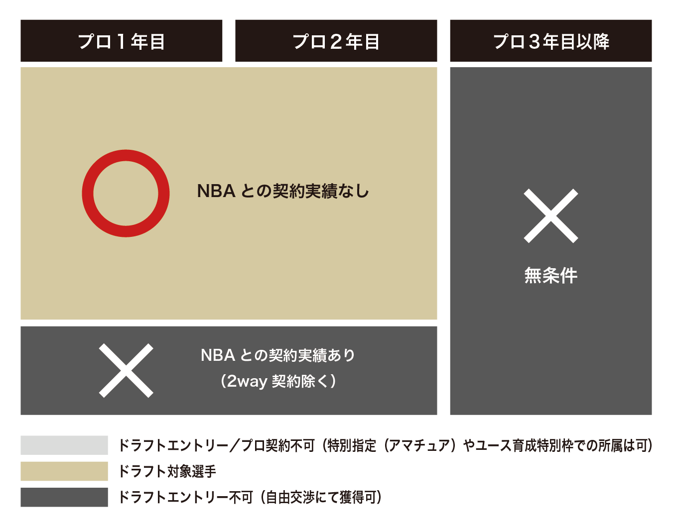 ドラフト時点でB.PREMIER、B.ONE、B.NEXTをはじめ、海外クラブを含むプロ実績が2年に満たない選手が対象。ただし、NBAとの契約実績のある選手は除く。