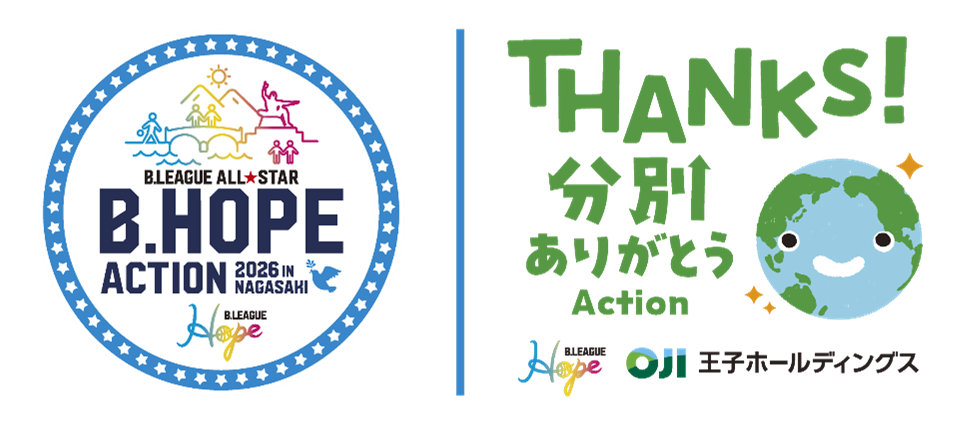 公益社団法人ジャパン・プロフェッショナル・バスケットボールリーグ(東京都文京区、チェアマン:島田慎二 以下「B.LEAGUE」)は、2026年1月16日(金)から18日(日)に開催する「りそなグループ B.LEAGUE ALL-STAR GAME WEEKEND 2026 IN NAGASAKI」の社会的責任活動において、PLANET VISION発表後、B.LEAGUE興行で初となる、B,Hope PLANET(地球環境) ACTIONに取り組むことをお知らせします。PLANET VISION発表後、B.LEAGUE興行で初! B.LEAGUE ALL-STAR GAMEでB.Hope PLANET ACTIONを実施 -王子ホールディングスとともに「アリーナ起点の資源循環の仕組みづくり」に取り組む-