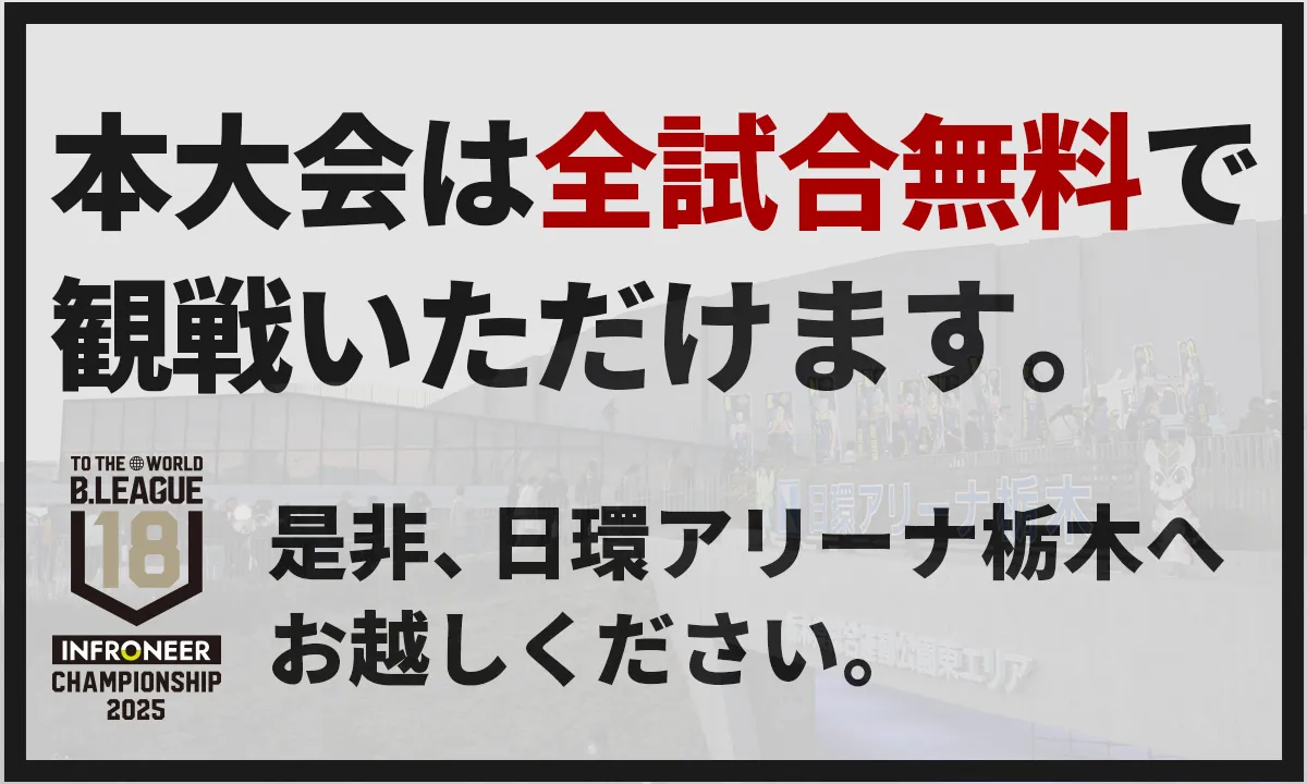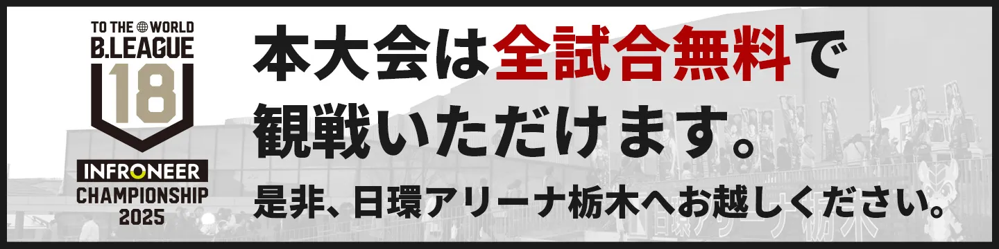 2025年11月22日(土)~11月26日(水)の5日間にかけて、日環アリーナ栃木(栃木県宇都宮市) にて「インフロニア B.LEAGUE U18 CHAMPIONSHIP 2025」を開催します。 5回目の開催となる今大会は過去最多の40チームが出場し、チャンピオンの座を争います。なお、上位4チームには海外のチームも出場する「インフロニア B.LEAGUE U18 INTERNATIONAL CUP 2026」への出場権が付与されます。