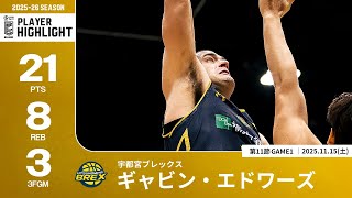 【プレーまとめ】宇都宮#33 ギャビン・エドワーズ|第11節GAME1|11.15.2025 プロバスケ (Bリーグ)