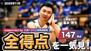 【一気見Bリーグ by スポーツくじWINNER】北海道#30 富永 啓生の2025年11月の全得点まとめ|りそなグループ B.LEAGUE 2025-26 シーズン