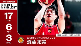 【プレーまとめ】名古屋D#2 齋藤 拓実|第5節GAME2|10.26.2025 プロバスケ (Bリーグ)
