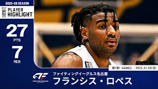 【プレーまとめ】FE名古屋#20 フランシス・ロペス|第7節GAME2|11.02.2025 プロバスケ (Bリーグ)