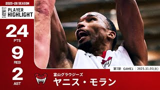 【プレーまとめ】富山#24 ヤニス・モラン|第7節GAME1|11.01.2025 プロバスケ (Bリーグ)