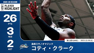 【プレーまとめ】島根#1 コティ・クラーク|第12節GAME1|12.06.2025 プロバスケ (Bリーグ)