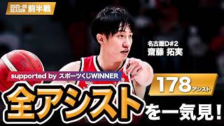 【一気見Bリーグ by スポーツくじWINNER】名古屋D#2 齋藤 拓実の10月~1月の全アシストまとめ|りそなグループ B.LEAGUE 2025-26 シーズン