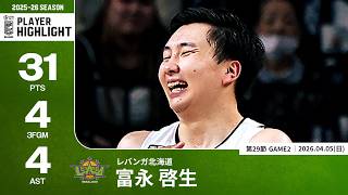 【プレーまとめ】北海道#30 富永 啓生|第29節GAME2|04.05.2026 プロバスケ (Bリーグ)