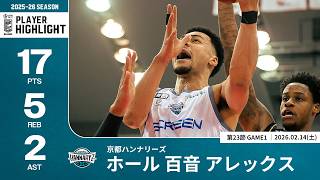 【プレーまとめ】京都#39 ホール 百音 アレックス|第23節GAME1|02.14.2026 プロバスケ (Bリーグ)