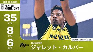 【プレーまとめ】仙台#8 ジャレット・カルバー|第34節|04.22.2026 プロバスケ (Bリーグ)