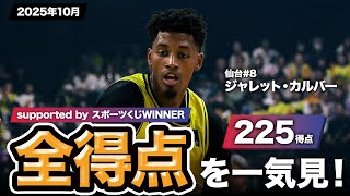【一気見Bリーグ by スポーツくじWINNER】仙台#8 ジャレット・カルバーの2025年10月の全得点まとめ|りそなグループ B.LEAGUE 2025-26 シーズン