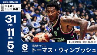 【プレーまとめ】滋賀#20 トーマス・ウィンブッシュ|第15節GAME2|12.21.2025 プロバスケ (Bリーグ)