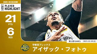 【プレーまとめ】宇都宮#42 アイザック・フォトゥ|第15節GAME1|12.20.2025 プロバスケ (Bリーグ)
