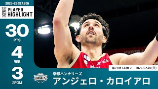 【プレーまとめ】京都#32 アンジェロ・カロイアロ|第21節GAME2|02.01.2026 プロバスケ (Bリーグ)