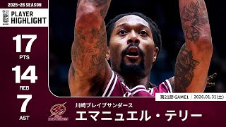 【プレーまとめ】 川崎#5 エマニュエル・テリー|第21節GAME1|01.31.2026 プロバスケ (Bリーグ)
