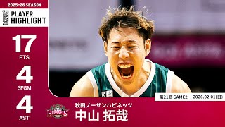 【プレーまとめ】秋田#17 中山 拓哉|第21節GAME2|02.01.2026 プロバスケ (Bリーグ)