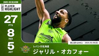 【プレーまとめ】北海道#22 ジャリル・オカフォー|第22節GAME2|02.08.2026 プロバスケ (Bリーグ)