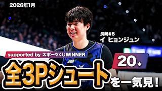 【一気見Bリーグ by スポーツくじWINNER】長崎#5 イ ヒョンジュンの2026年1月の全3Pシュートまとめ|りそなグループ B.LEAGUE 2025-26 シーズン