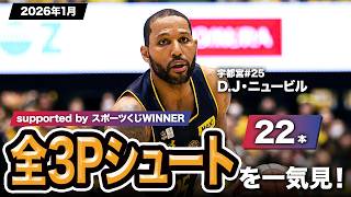 【一気見Bリーグ by スポーツくじWINNER】宇都宮#25 D.J・ニュービルの2026年1月の全3Pシュートまとめ|りそなグループ B.LEAGUE 2025-26 シーズン
