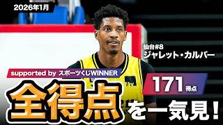 【一気見Bリーグ by スポーツくじWINNER】仙台#8 ジャレット・カルバーの2026年1月の全得点まとめ|りそなグループ B.LEAGUE 2025-26 シーズン