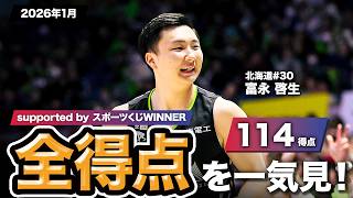 【一気見Bリーグ by スポーツくじWINNER】北海道#30 富永 啓生の2026年1月の全得点まとめ|りそなグループ B.LEAGUE 2025-26 シーズン