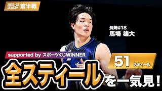 【一気見Bリーグ by スポーツくじWINNER】長崎#18 馬場 雄大の10月~1月の全スティールまとめ|りそなグループ B.LEAGUE 2025-26 シーズン