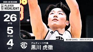 【プレーまとめ】A千葉#3 黒川 虎徹|第24節GAME1|03.07.2026 プロバスケ (Bリーグ)