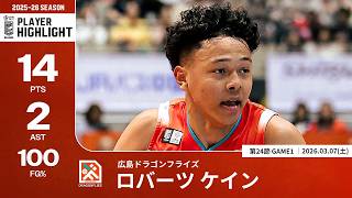 【プレーまとめ】広島#4 ロバーツ ケイン|第24節GAME1|03.07.2026 プロバスケ (Bリーグ)