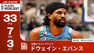 【プレーまとめ】広島#13 ドウェイン・エバンス|第27節GAME2|03.29.2026 プロバスケ (Bリーグ)